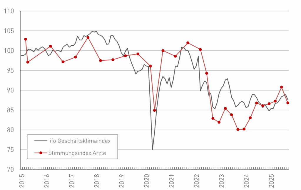 Vergleich des Stimmungsindex der Ärzte mit dem ifo-Geschäftsklimaindex (Stand September 2025)